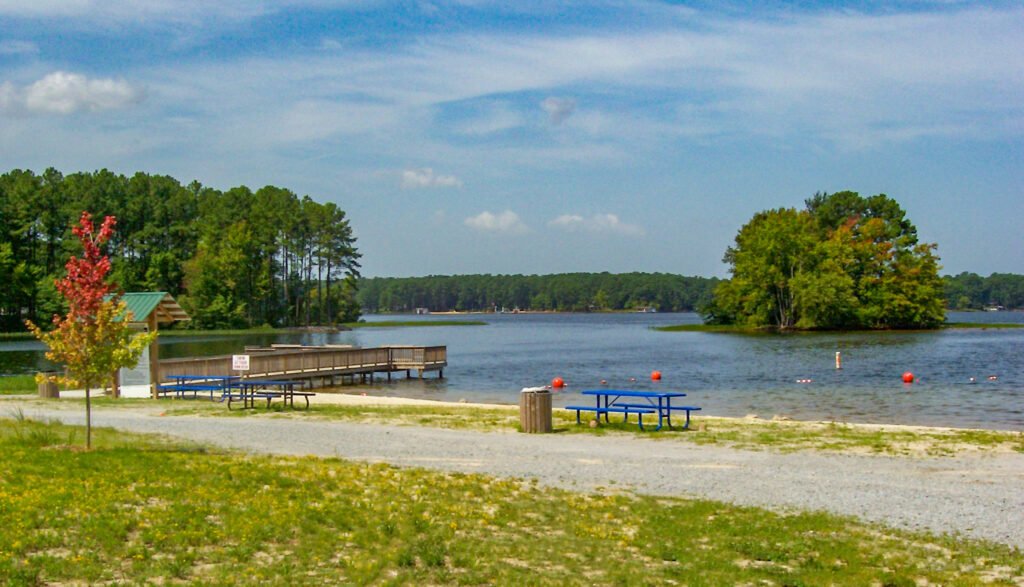 Start your adventure at the Lake Gaston Day Use Area (2369 Jack Brown Road), where you’ll find a boat ramp, fishing pier, swimming beach, and shaded picnic spots perfect for family outings.