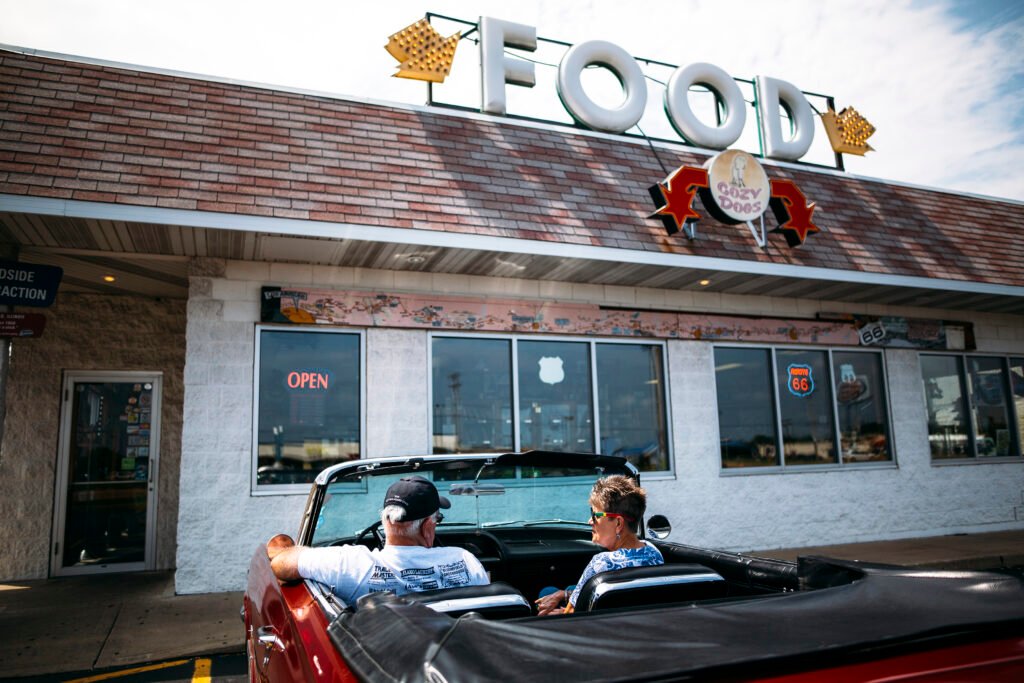 The Cozy Dog Drive In is a traditional Route 66 diner that became a part of the history of The Mother Road, and the history of Springfield, when, in 1946, inventor Ed Waldmire introduced the “Cozy Dog” – the famous “hot dog on a stick.” The Waldmire family still makes this delicacy today. Inside the diner, located on Old Route 66 since 1949.